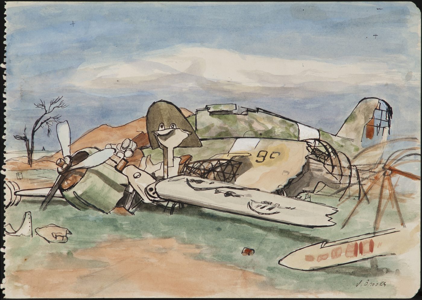 Charlotte Brooks Foundation||James Brooks (American, 1906–1992), Untitled (Study for downed plane), ca. 1944, Watercolor on paper, 9 7/8 x 14 inches. Parrish Art Museum, Water Mill, NY, Gift of the James and