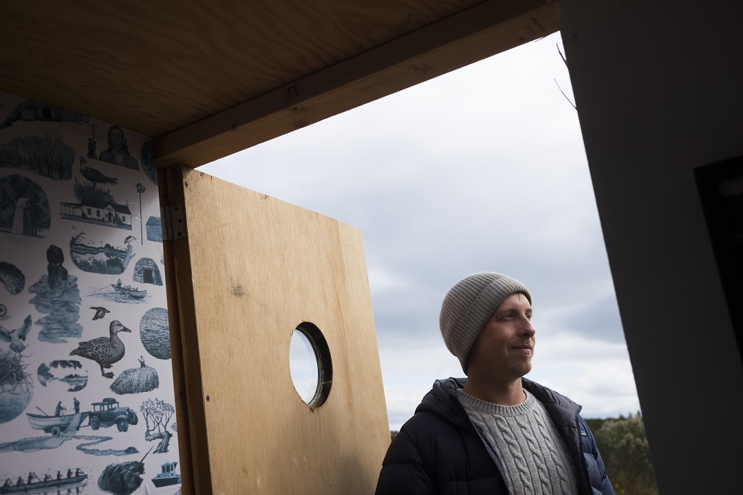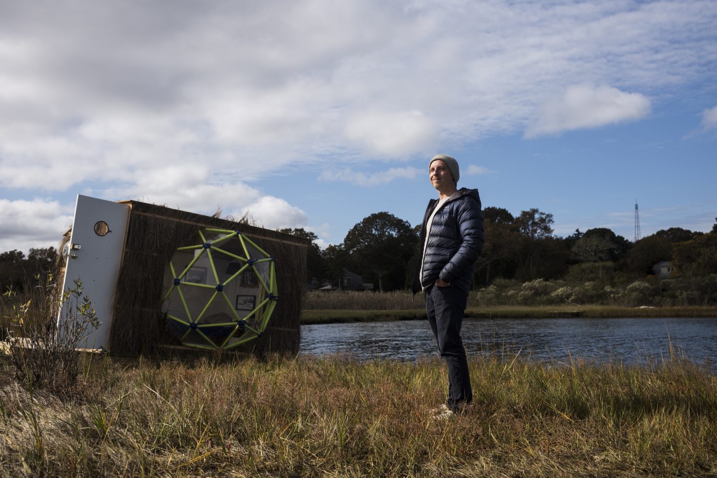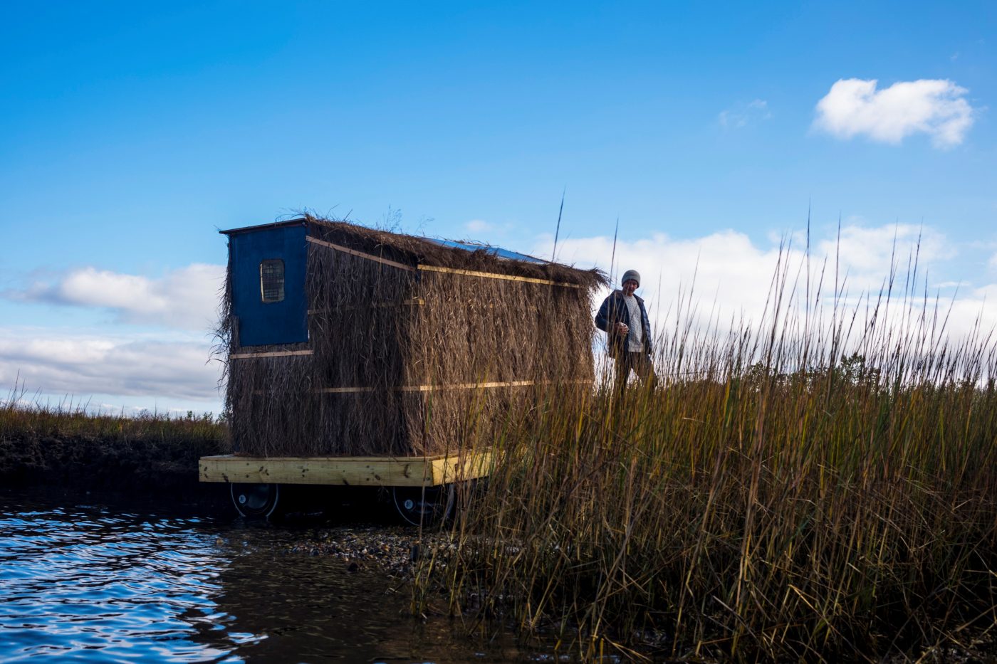 Scott Bluedorn in his Bonac Blind, October 2020. Image courtesy the artist.