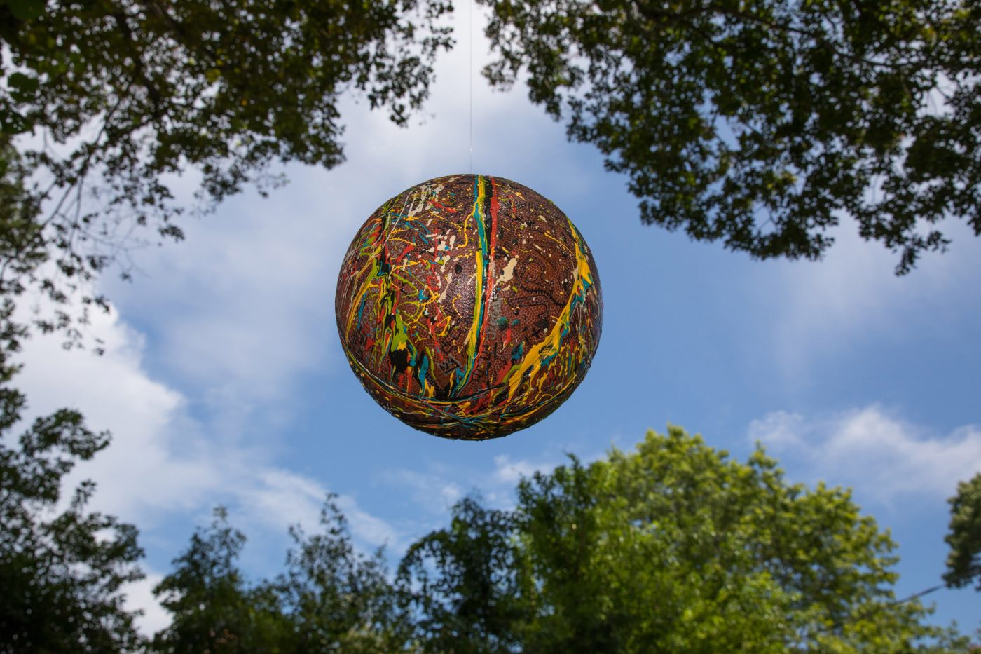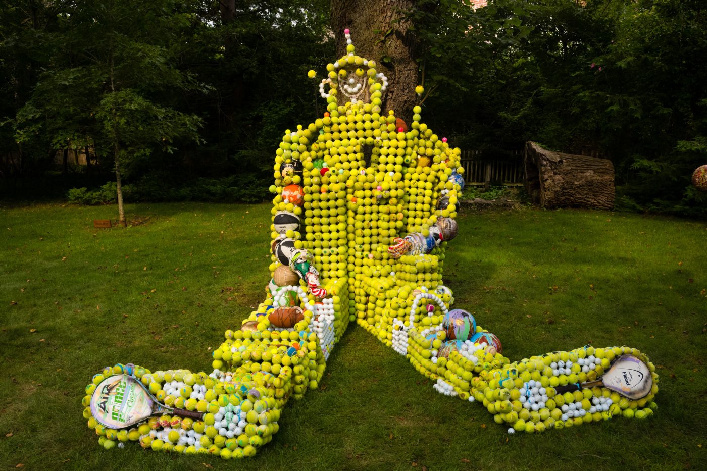 For Parrish Road Show 2018, painter and sculptor Esly E. Escobar (b. 1981) created Playground, a site-specific installation including an abstract figure made of 10,000 balls used in a variety of sports—tennis, soccer, golf, baseball, and basketball—surrounded by toys. The installation comments on the wide range of social strata on the East End who engage in these sports, bringing them together in a figure of positive energy.