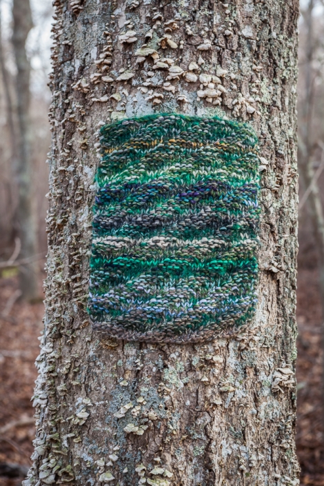 The exploration and observation of the nuances of bark has long been the impetus for Lambrecht’s creation of prints and fiber pieces. As a continuation of a project Lambrecht began last fall on Hardanger Fjord’s edge in Norway, she will be covering stones and rocks with colorful knitted wool to exalt the small and sometimes overlooked and prompts the viewer to rediscover these humble garden elements. The soft covers challenge the perception of the very qualities of a stone, thus enhancing the visual and tactic experiences that contribute to memory of place.