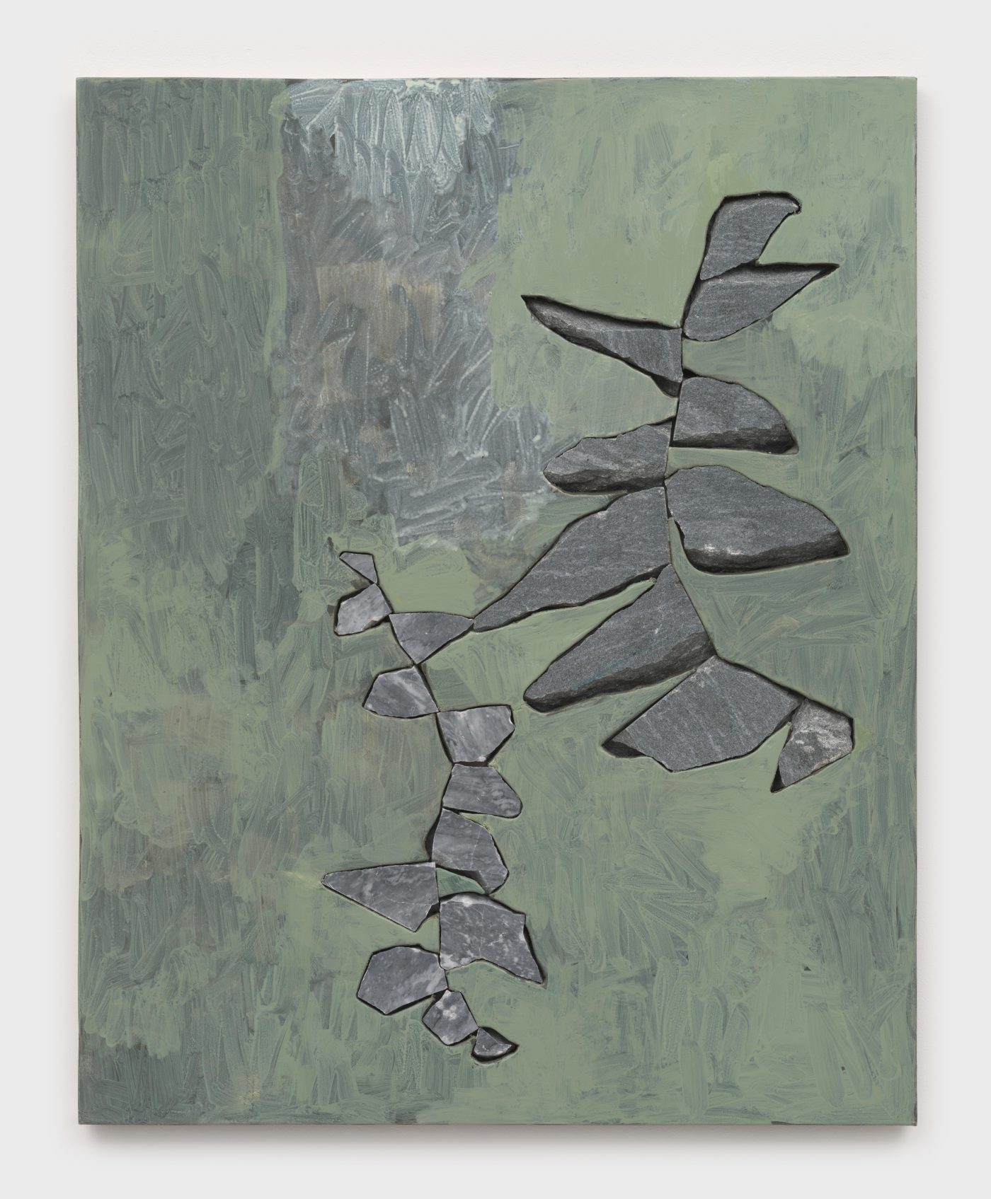 Sam Moyer (American, b. 1983). Clipping 12, 2024, marble, slate, acrylic on plaster-coated canvas mounted to MDF, 30 ⅛ x 24 ⅛ x 1 in. Courtesy the Artist and Sean Kelly, NY.