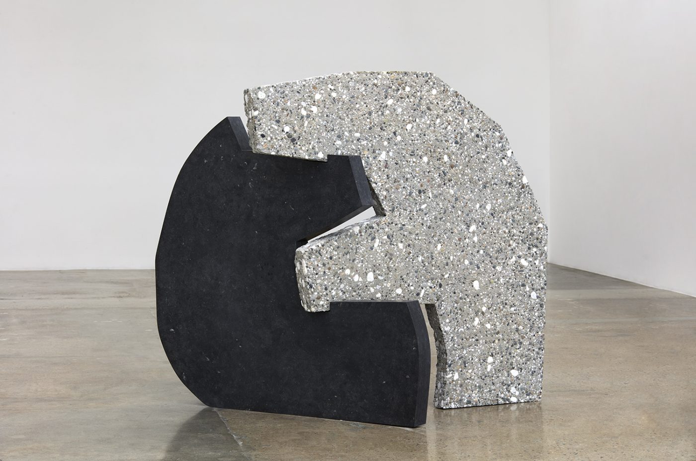 Sam Moyer, Bluestone Dependent 4, 2021, Belgian Bluestone and concrete with stone aggregate, 62.25 x 72 x 42 in. Courtesy the artist and Sean Kelly, NY.
