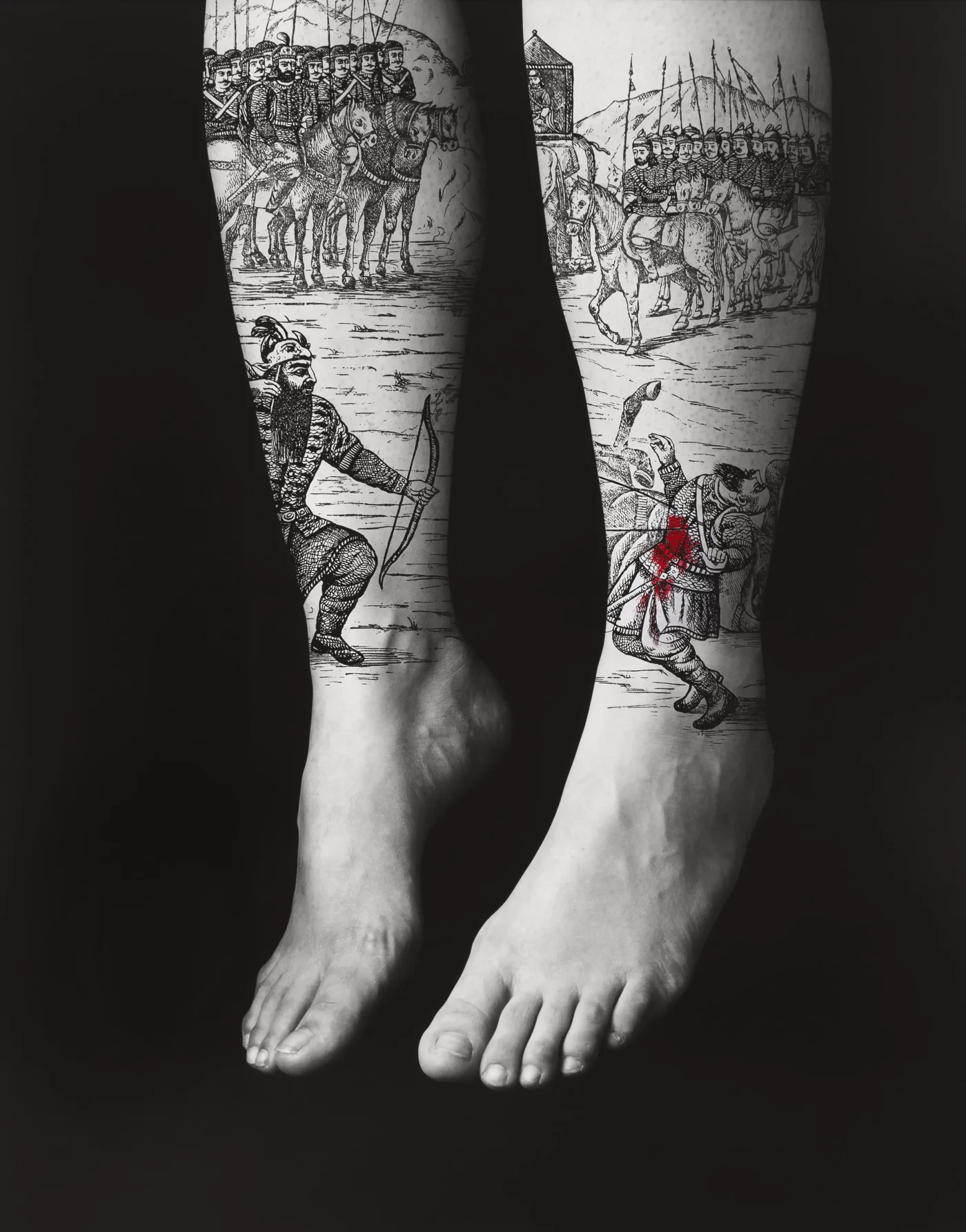 Shirin Neshat (b. Qazvin, 1957), an Iranian-born artist and filmmaker living in exile in America, has spent her career examining what it means to exist between two cultures, focusing on human resilience in the face of upheaval and oppression. Born outside of Tehran, Neshat moved to California for her studies in the 1970s. When the Islamic Revolution erupted in Iran in 1979, she was unable to return to her home and family for many years. A brief visit in the 1990s, where she witnessed the impact of rigid Islamic law on Iranian women, marked the beginning of Neshat’s thirty-year engagement with themes of female empowerment, political resistance, and displacement and belonging. Drawing on the emotional impact of poetry and music, her highly stylized photographs and narrative time-based works explore the turbulent social conditions of life in Iran and, more recently, America.