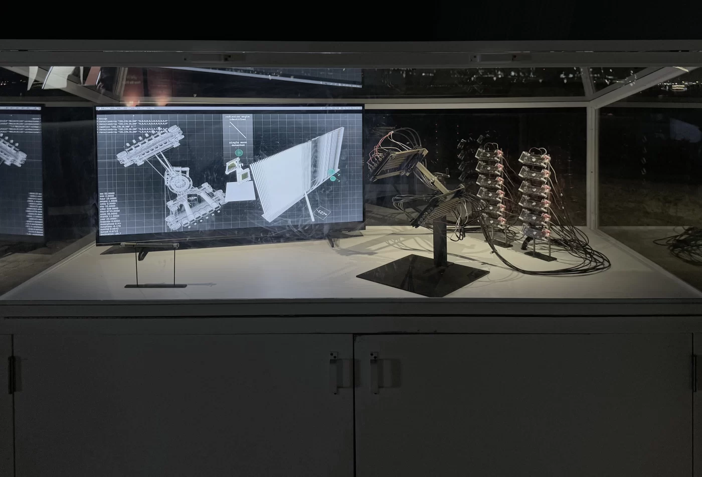 Rafael Lozano-Hemmer (Canadian, b. Mexico, 1967), Detail of Collider for Rafael Lozano-Hemmer: Translation Island, Department of Culture and Tourism of Abu Dhabi, Abu Dhabi, United Arab Emirates, 2023, Photo by: Pierre Tremblay, Courtesy Antimodular Studio.