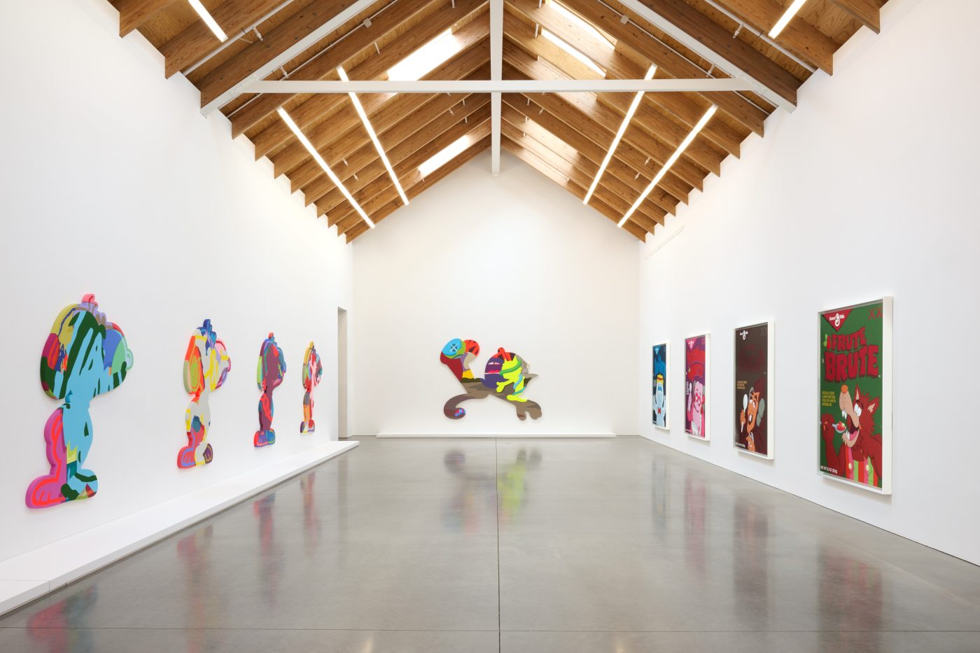 Installation view of KAWS: TIME OFF at the Parrish Art Museum, Water Mill, NY (July 14–October 13, 2024). Photo: Jason Schmidt.||Installation view of KAWS: TIME OFF at the Parrish Art Museum, Water Mill, NY (July 14–October 13, 2024). Photo: Jason Schmidt.||Installation view of KAWS: TIME OFF at the Parrish Art Museum, Water Mill, NY (July 14–October 13, 2024). Photo: Jason Schmidt.||Installation view of KAWS: TIME OFF at the Parrish Art Museum, Water Mill, NY (July 14–October 13, 2024). Photo: Jason Schmidt.||||||KAWS (American, b. 1974), POINT OF DISORDER, 2013, acrylic on canvas, 120 x 116 in. © KAWS, Photo: Tom Powel Imaging.||KAWS (American, b. 1974), PASS THE BLAME, 2013, acrylic on canvas, in 2 parts, 120 x 120 in. and 90 x 76 in. © KAWS, Photo: Tom Powel Imaging.||||||KAWS installation view at National Gallery of Victoria. Photograph: Tom Ross. Courtesy the Artist.||KAWS installation view at National Gallery of Victoria. Photograph: Tom Ross. Courtesy the Artist.||KAWS, LOST FUTURE, 2023 Acrylic on canvas 86 x 72 inches. Courtesy the Artist.||KAWS, SEPARATED, 2021 Bronze, paint 48 x 39.12 x 49.55 inches