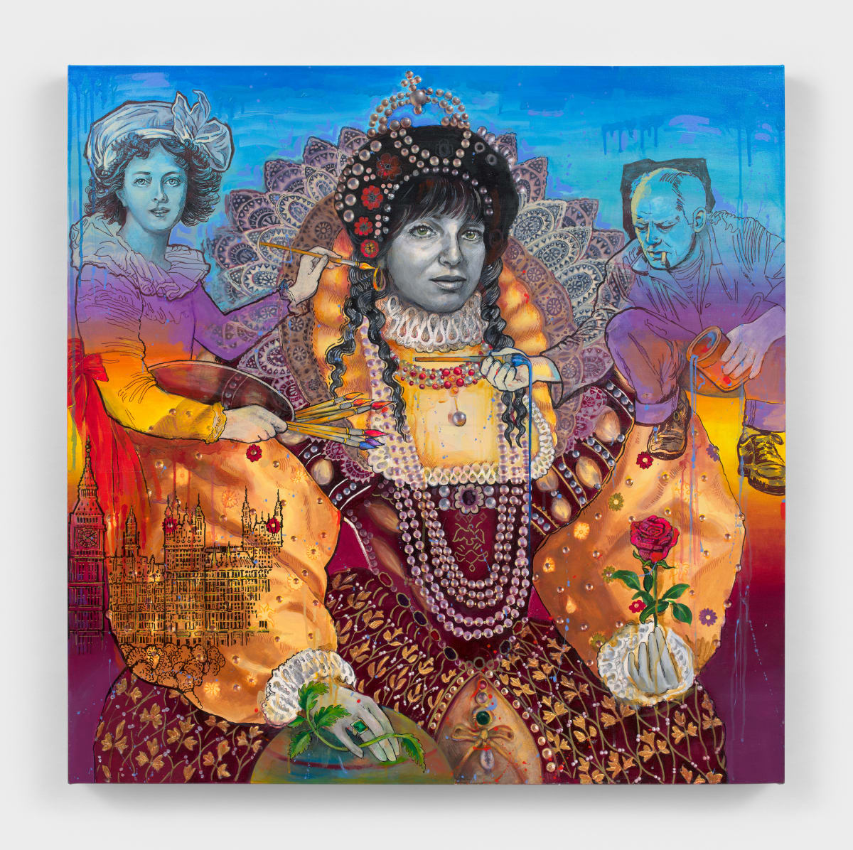Audrey Flack (American, 1931–2024). A Brush with Destiny, 2023, acrylic and mixed media on canvas, 40 x 40 in. Courtesy Hollis Taggart.